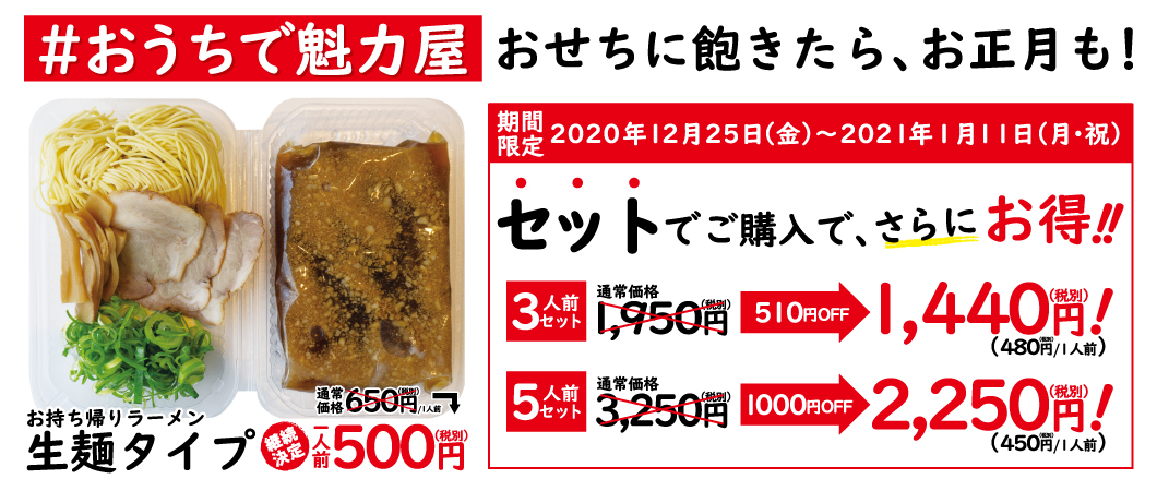 【期間限定】「お持ち帰りラーメン生麺タイプ」がセットでさらに割引に!
